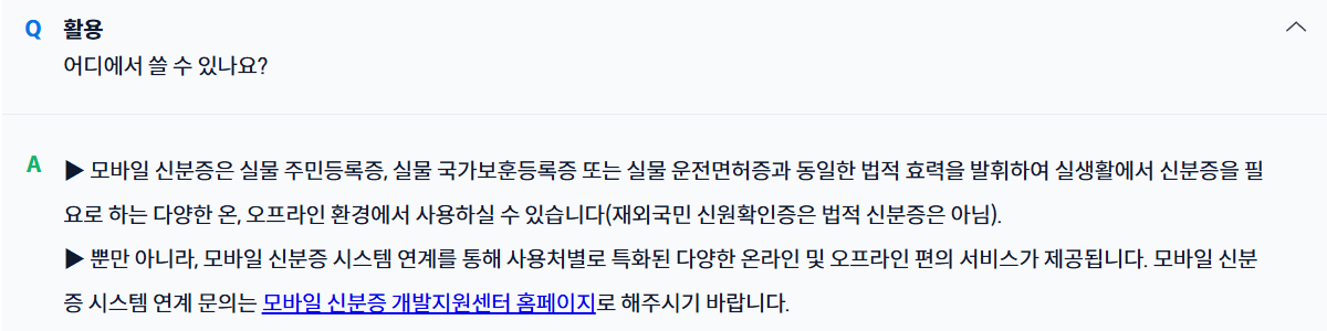 - 현재 모바일 주민등록증, 운전면허증, 국가유공자증, 장애인등록증 등이 도입됨
